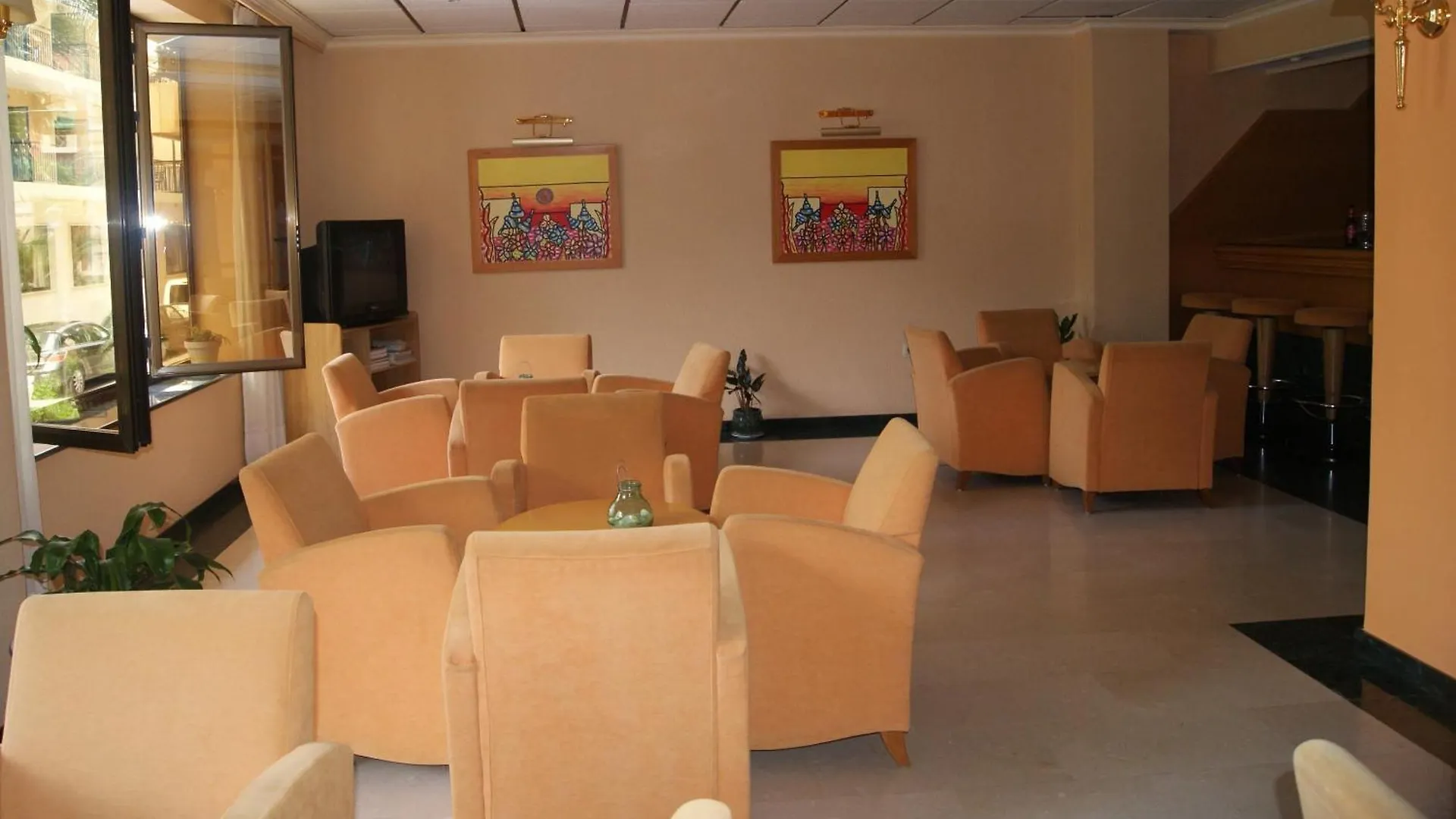 Comprising a balcony, the rooms at Rosabel Hotel are equipped with a flat-screen TV with satellite channels. Furnished with a writing table, they also have a tiled floor.